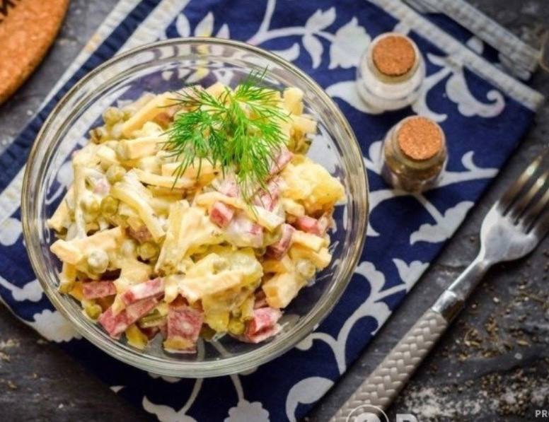 Вкусный, простой и сытный салат "Охотничий". Для приготовления самые простые ингредиенты. Идеально подходит как для семейного ужина, так и на праздничный стол.